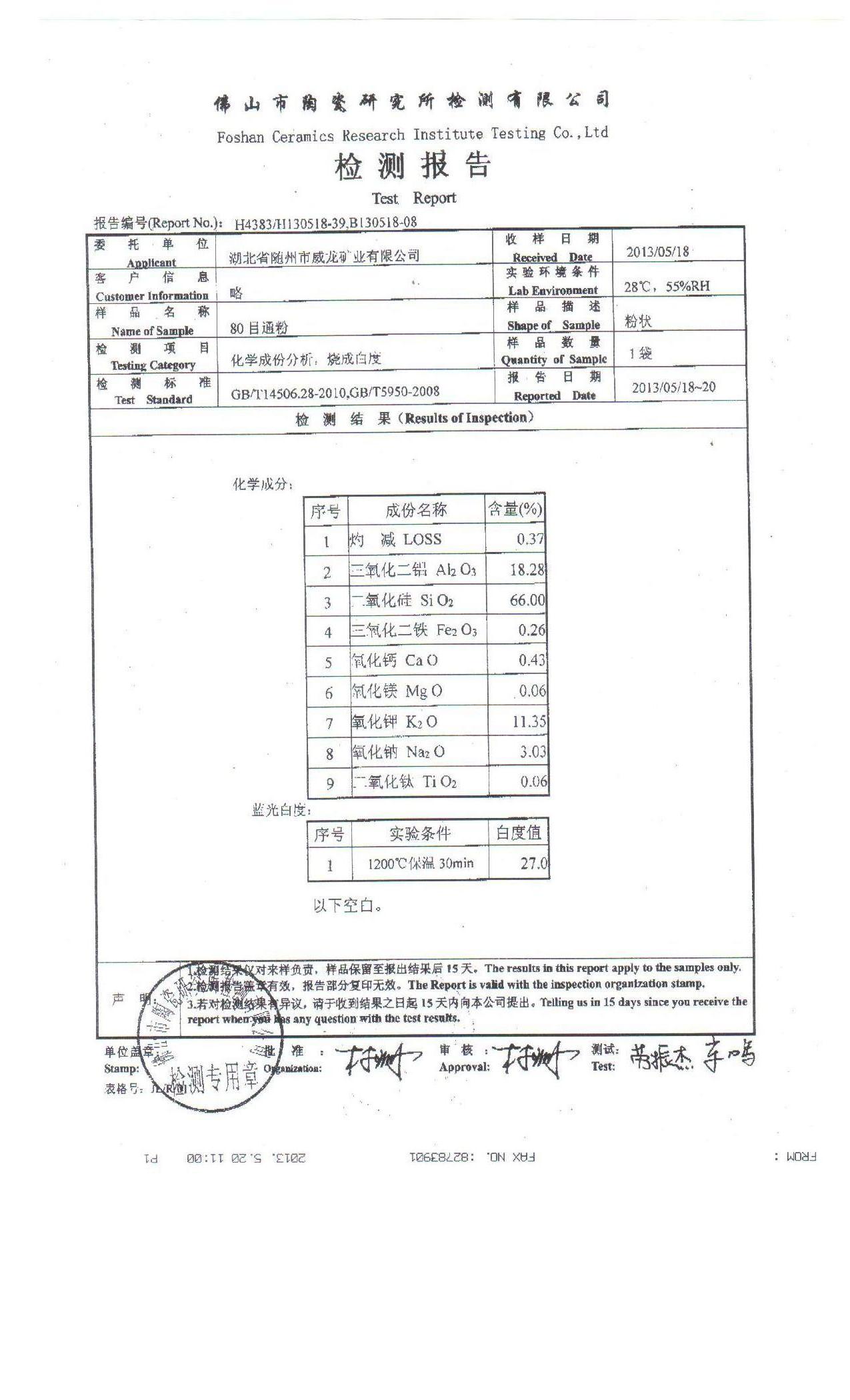 俗話說“貨比三家”,現(xiàn)在客戶買東西都是喜歡東看看,西瞅瞅,覺得哪家實惠、質(zhì)量過關(guān)才會去訂購。 那 隨州市威龍礦業(yè)的質(zhì)量到底怎么樣呢 小編隨著和馮董事長還有現(xiàn)場工作人員到現(xiàn)場去參觀了解了下 馮董事長介紹說,威龍礦業(yè)現(xiàn)有兩條先進的鉀長石生產(chǎn)線,一條是雷蒙磨生產(chǎn)線,一條是沖擊破生產(chǎn)線,年產(chǎn)鉀長石產(chǎn)品5萬噸,具有年生產(chǎn)鉀長石5萬噸的生產(chǎn)能力. ,并還詳細介紹了公司生產(chǎn)流程圖:一次洗礦 → 二次洗礦→曬礦 → 傳送進料 → 第一道永磁選 → 進主機 → 出料 → 第二道永磁選 → 第三道電磁選 → 第四道電磁選 → 振動篩分篩 → 分裝 → 過磅 → 入庫→出庫→裝車→運輸 說到這,馮董事長讓工作人員從文件夾里拿出佛山市研究中心檢測的報告給記者看,小編隨機讓攝像大哥拍了幾張,以此讓大家更清晰透徹了解。 |